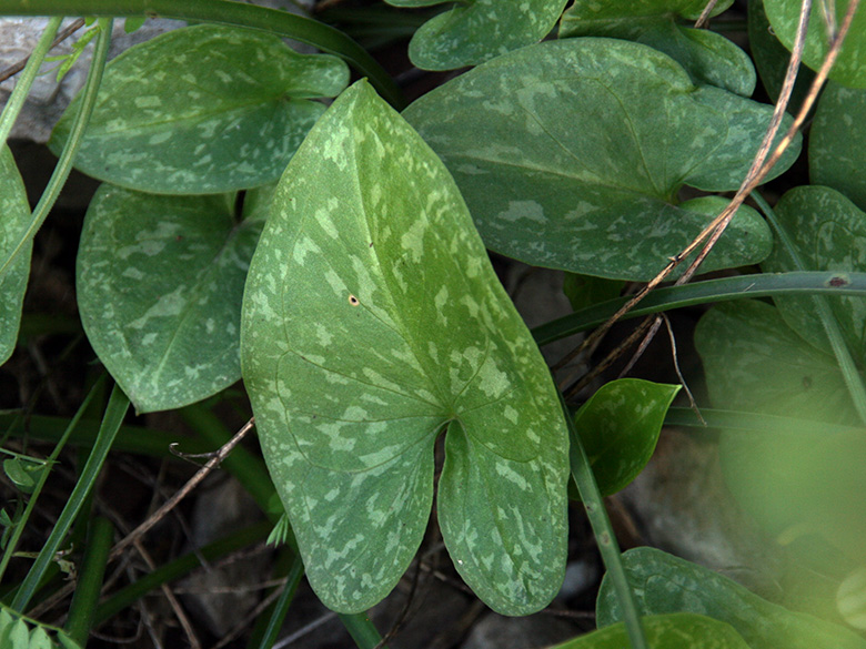 ![]() Arum italicum subsp. italicum, Blätter/leaves, Griechenland, Peloponnes, Korinthia, Stymfalia-See (12.04.2014, © Gisela Nikolopoulou) |