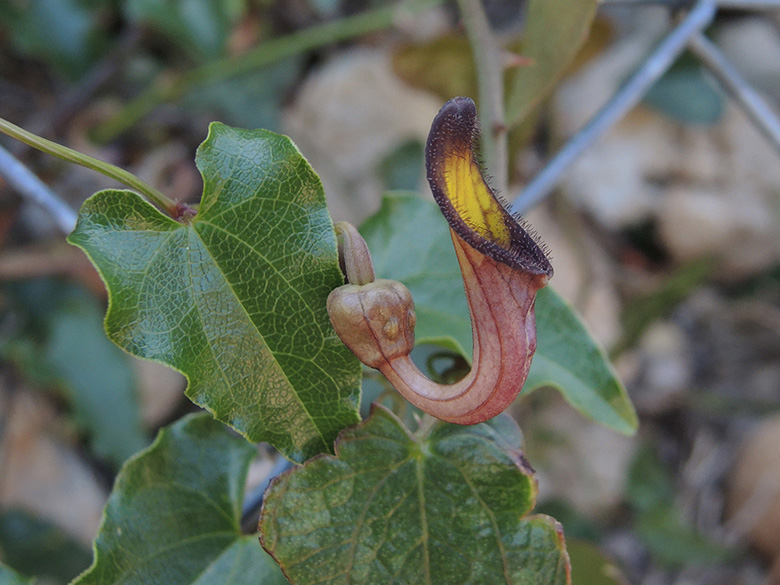 | Aristolochia - Osterluzei 5 Arten auf der Peloponnes vor: A. elongata, A. microstoma, A. parvifolia, A. rotunda subsp. insularis, A. sempervirens |