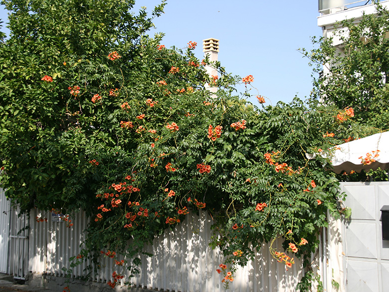 ![]() Campsis radicans, Griechenland, Peloponnes, Korinthia, Korinth, gepflanzt (08.08.2012, © Gisela Nikolopoulou) |