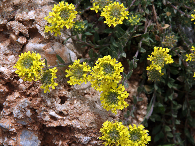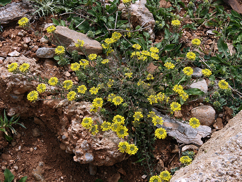 Alyssum - Steinkraut - Alison, Madwort 14 Arten kommen auf der Peloponnes vor: A. alyssoides, A. chalcidicum, A. foliosum, A. minutum, A. montanum (subsp. montanum & subsp. repens), A. murale, A. sibiricum, A. siculum, A. simplex, A. simulans, A. smyrnaeum, A. strigosum, A. taygeteum, A. turkestanicum? |