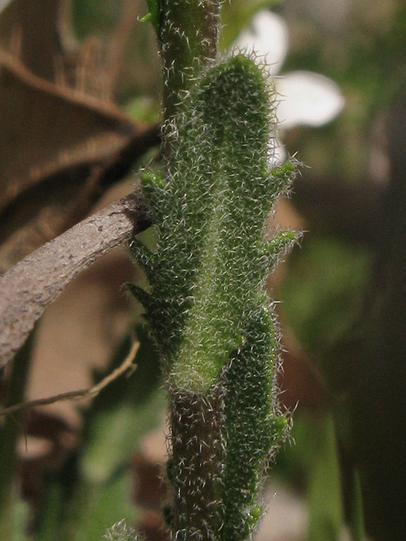 ![]() Cardamine graeca, Stängelblatt, Griechenland, Peloponnes, Arkadien, Parnon, Bachufer bei Kastanitsa (05.04.2013, © Armin Jagel) |