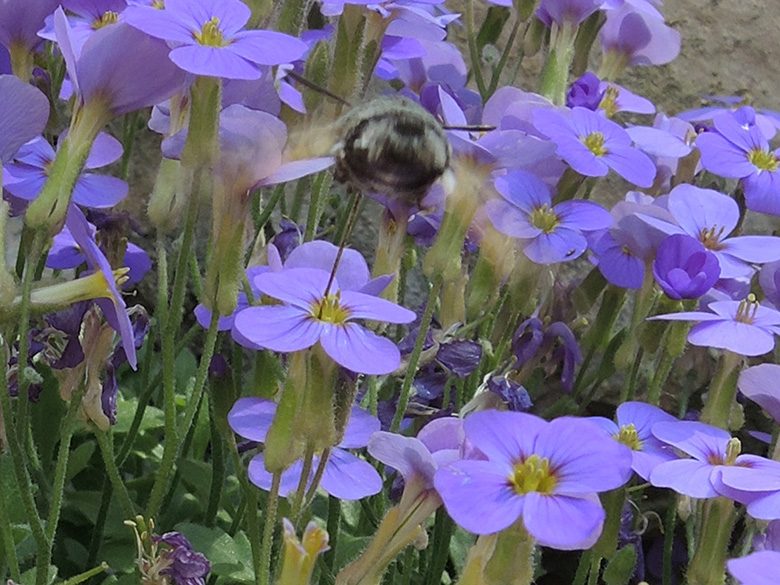 ![]() Aubrieta deltoidea, mit Taubenschwänzchen/with Hummingbird hawk-moth (Macroglossum stellatarum) Griechenland, Peloponnes, Korinthia, Limni Stymfalia; (13.04.2015, © Armin Jagel) |