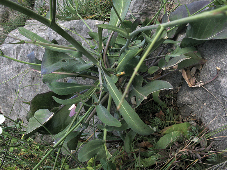 ![]() Crambe hispanica, Blatt/leaf, Griechenland, Peloponnes, Lakonien, Mani (24.03.2016, © Armin Jagel) |