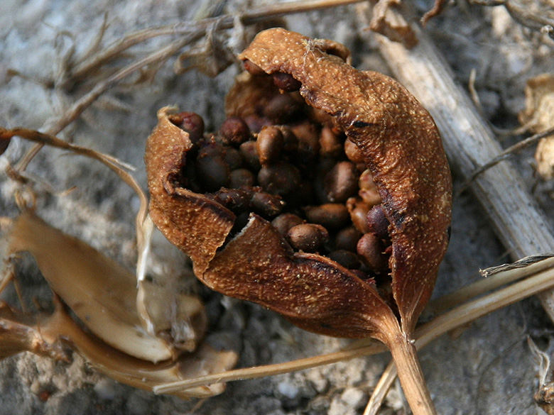 ![]() Capparis sicula subsp. sicula, leere Frucht/empty fruit, Griechenland, Peloponnes, Korinthia, Korinth (21.08.2011, © Gisela Nikolopoulou) |