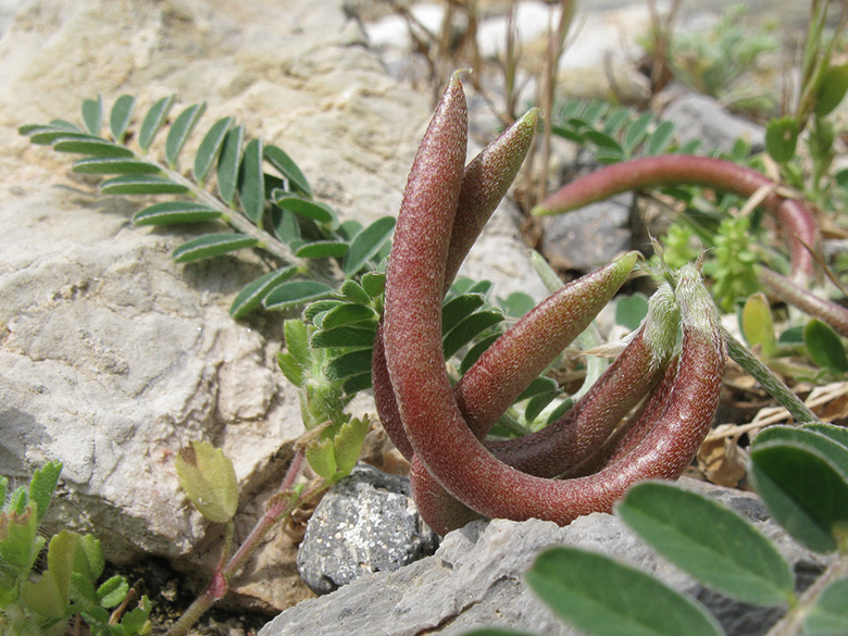 ![]() Astragalus monspessulanus, Griechenland, Peloponnes, Korinthia, Kyllini-Massiv, Limni Dasiou, Früchte (22.05.2018, © Gisela Nikolopoulou) |