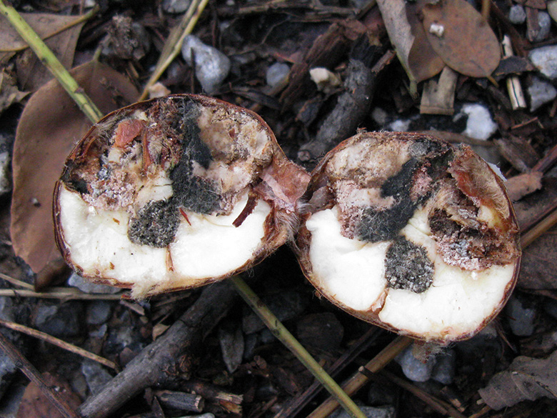 ![]() Castanea sativa, geschnittene Frucht/sliced fruit, Griechenland, Peloponnese, Arkadien, Parnon, Kastanitsa (17.11.2013, © Armin Jagel) |