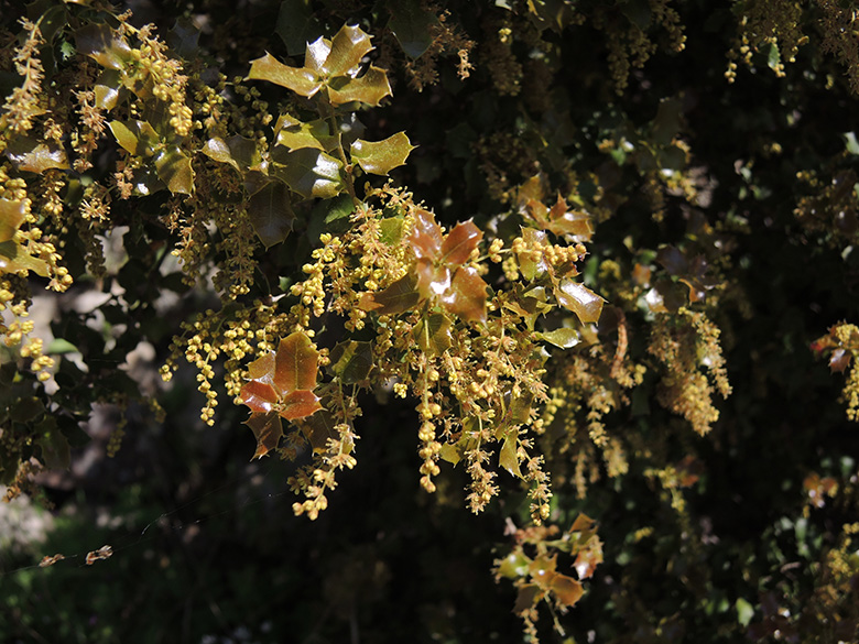 ![]() Quercus coccifera, männliche Blüten/male flowers, Griechenland, Peloponnes, Korinthia, Akrokorinth (17.04.2012, © Gisela Nikolopoulou) |