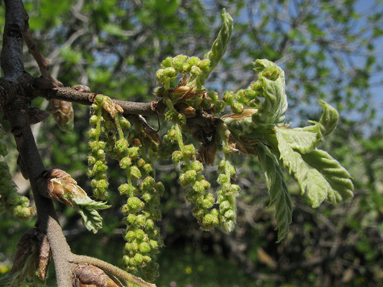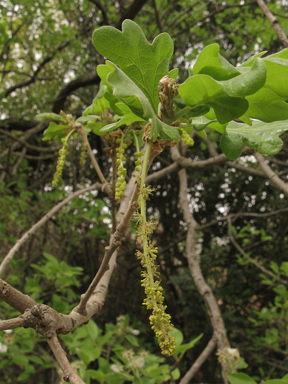 ![]() Quercus pubescens, männliche Blütenkätzchen/male catkins, Griechenland, Peloponnese, Lakonien, Parnon, Malea-Halbinsel, Velanidia (07.04.2013, © Armin Jagel) |