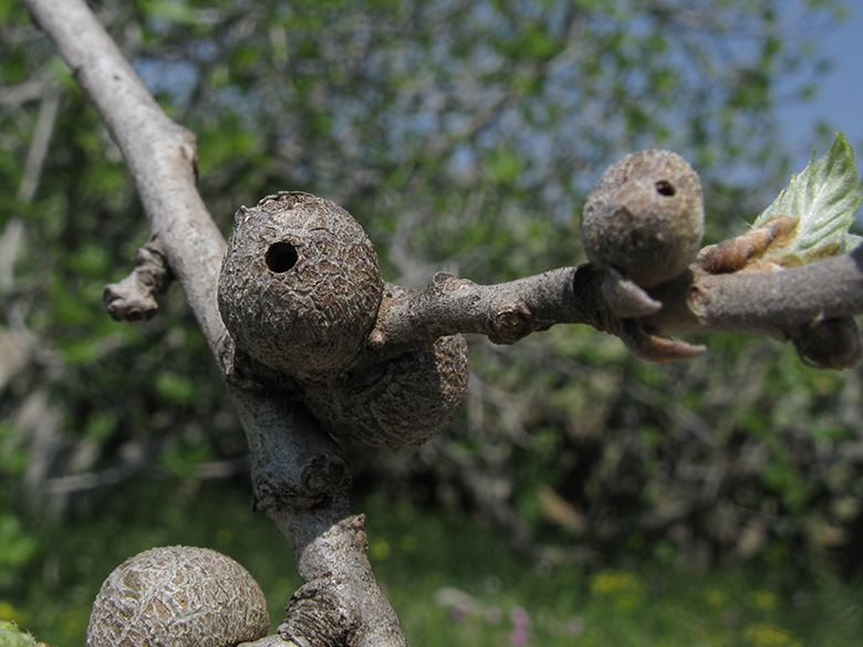 ![]() Quercus ithaburensis subsp. macrolepis, mit Galle/with gall, Griechenland, Peloponnes, Lakonien, Mani, Nyfi (04.04.2011, © Armin Jagel) |
