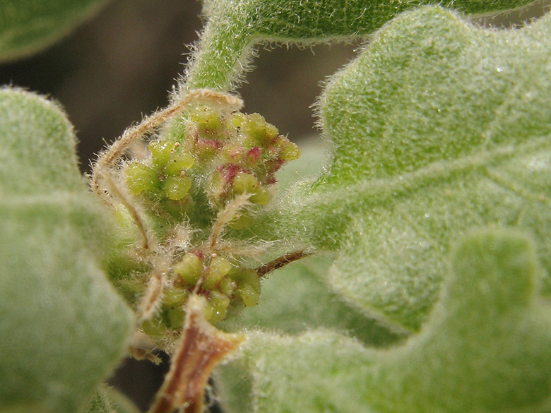 ![]() Quercus coccifera, weibliche Blüten/females flowers, Griechenland, Peloponnes, Argolis, Methana, Vulcano (22.04.2015, © Armin Jagel) |