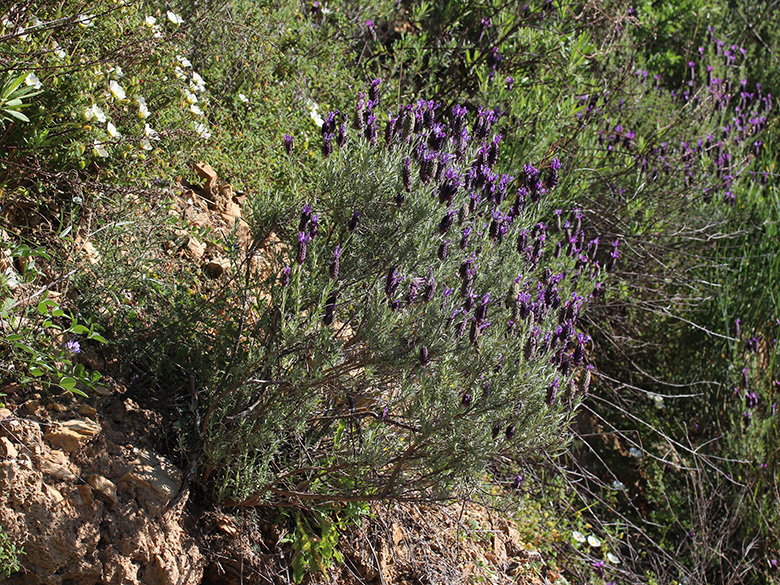 ![]() Lavandula stoechas subsp. stoechas, Griechenland, Rhodos (07.04.2017, © Armin Jagel) |