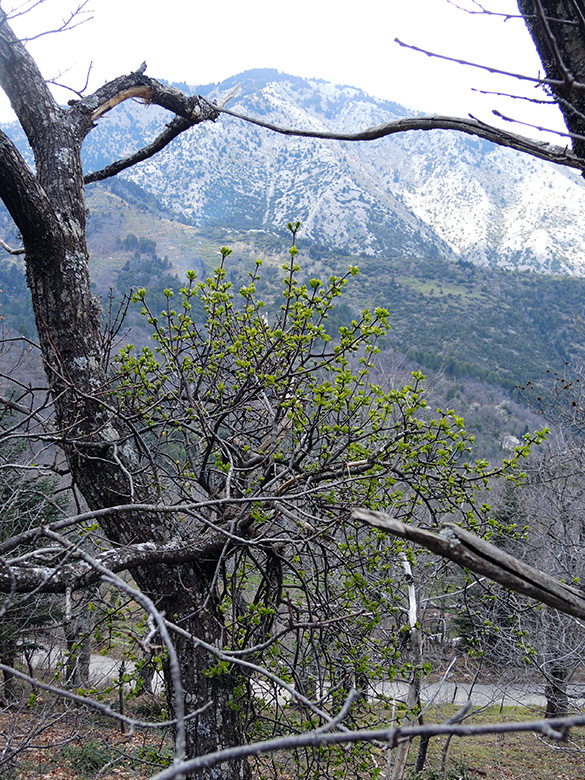 ![]() Loranthus europaeus auf/on Castanea sativa, Griechenland, Peloponnes, Arkadien, Kastanitsa (29.03.2016, © Armin Jagel) |