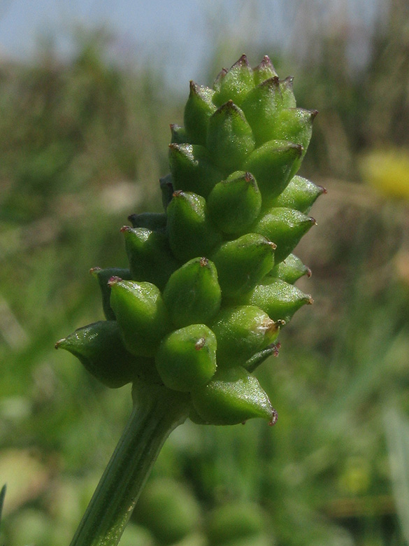 ![]() Ranunculus sardous, Frucht/fruit, Griechenland, Peloponnes, Korinthia, Akrokorinth (08.05.2020, © Gisela Nikolopoulou) |