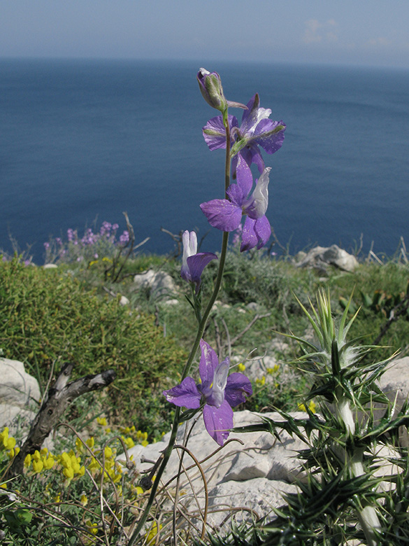 ![]() Delphinium staphisagria, Peloponnese, Laconia, Malea Peninsula, Monemvasia (27.04.2017, © Armin Jagel) |