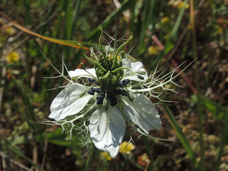 ![]() Nigella arvensis subsp. aristata, Griechenland, Peloponnes, Korinthia, Akrokorinth (01.08.2017, © Gisela Nikolopoulou) |
