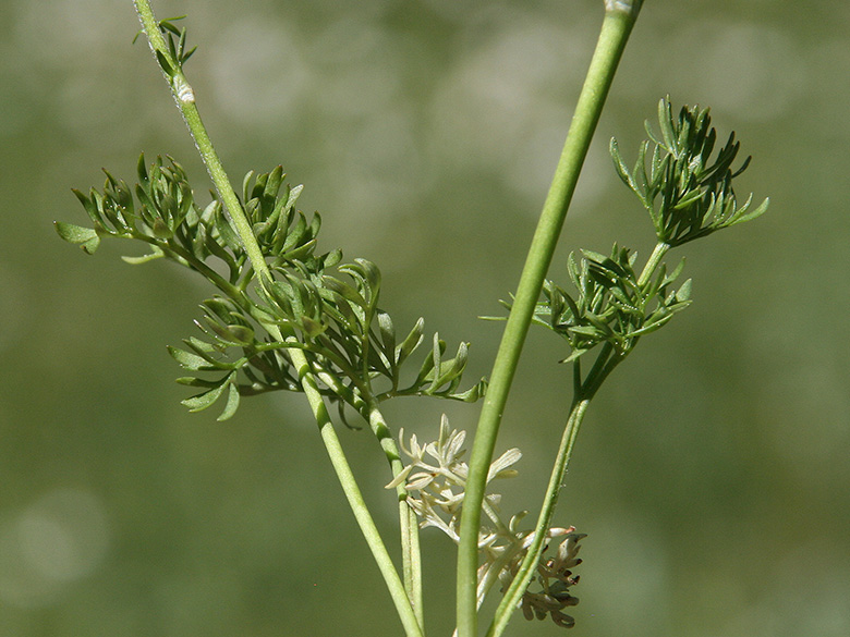 ![]() Nigella arvensis subsp. aristata, Griechenland, Peloponnes, Korinthia, Akrokorinth, Blätter (01.08.2017, © Gisela Nikolopoulou) |