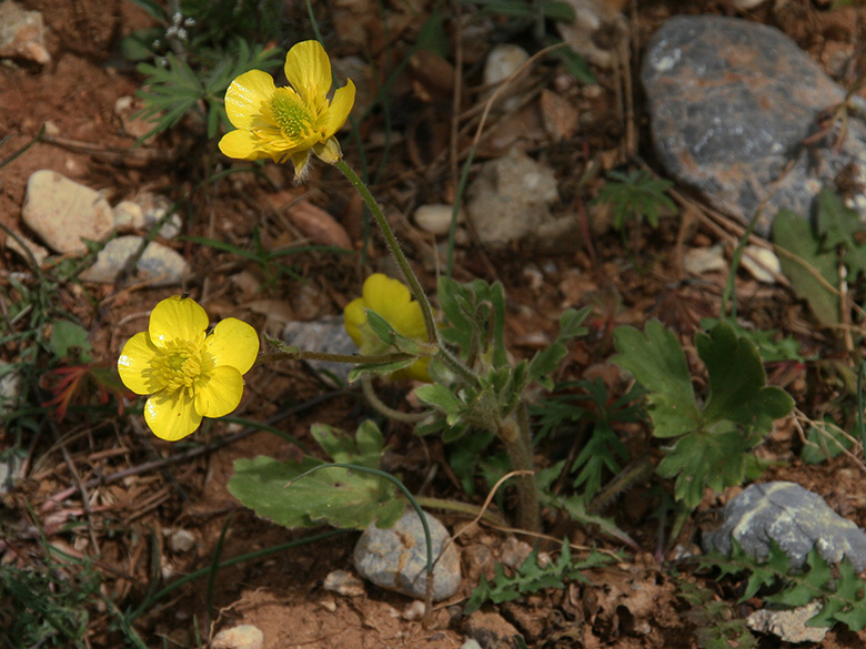 subgen. Ranunculus R. arvensis, R. asiaticus, R. brevifolius, R. brutius, R. bullatus subsp. cytheraceus, R. chius, R. gracilis, R. isthmicus subsp. isthmicus, R. lingua, R. millefoliatus, R. milii, R. muricatus, R. neapolitanus, R. ophioglossifolius, R. paludosus, R. psilostachys, R. repens, R. rumelicus, R. sardous, R. sartorianus, R. sprunerianus, R. subhomophyllus, R. velutinus |