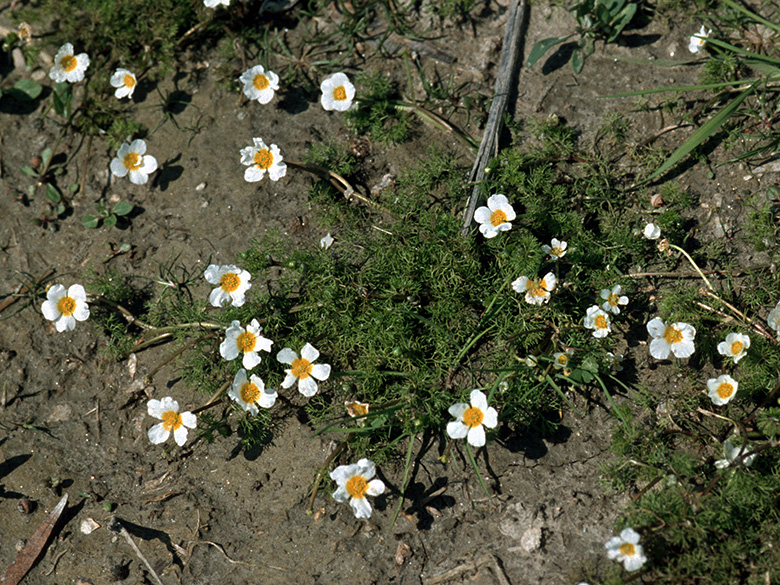 | Ranunculus peltatus subsp. fucoides (= R. peltatus subsp. saniculifolius, R. saniculifolius) - Schild-Wasserhahnenfuß | |