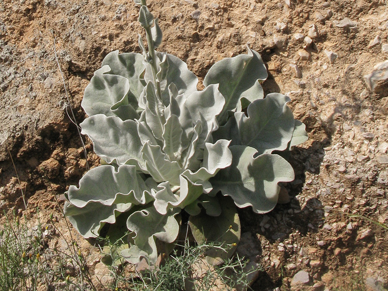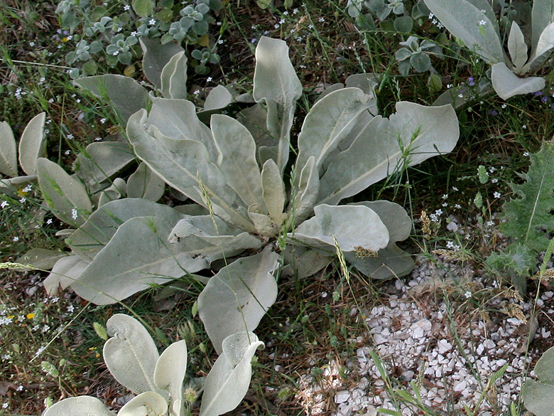 ![]() Verbascum mallophorum, Blattrosette/leaf rosette, Griechenland, Peloponnes, Korinthia, Kyllini-Massiv (13.06.2019, © Gisela Nikolopoulou) |