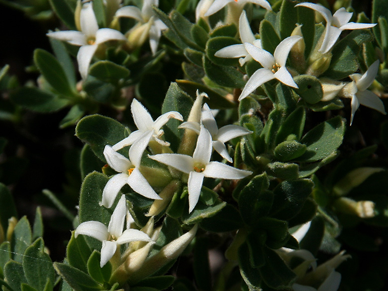 | Daphne - Seidelbast 2 Arten kommen auf der Peloponnes vor: D. jasminea subsp. jarmilae, D. oleoides subsp. oleoides |