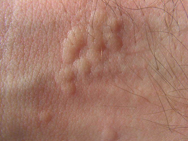 ![]() Urtica dioica, Hautreaktion bei Kontakt mit den Brennhaaren/skin reaction contact with urticating hairs, Deutschland, NRW (17.07.2005, © Armin Jagel) |