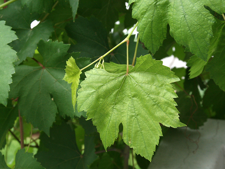 ![]() Vitis vinifera subsp. vinifera, Blatt/leaf, Griechenland, Peloponnes, Korinthia, Korinth (16.07.2019, © Gisela Nikolopoulou) |